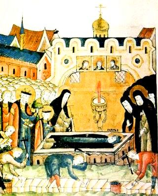 У 1392 році світла душа цього праведника вознеслася до Бога. Уже на початку наступного століття, у 1422 році, під час будівництва собору монастиря на честь Живоначальної Трійці, були відкриті нетлінні мощі преподобного.