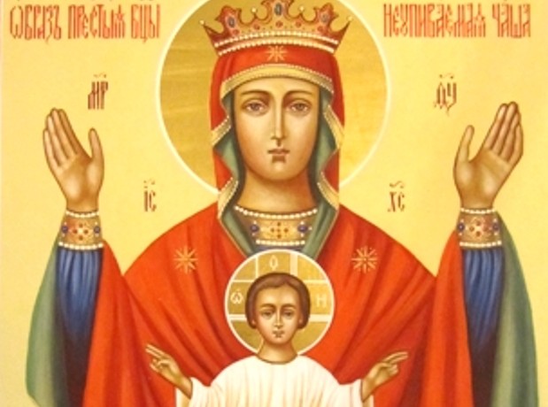Явління образу Пресвятої Богородиці «Невипивана чаша» сталося в 1878 році в монастирі міста Серпухова. Молитва перед іконою допомагає одержимим пристрастю пияцтва позбутися цієї згубної недуги.