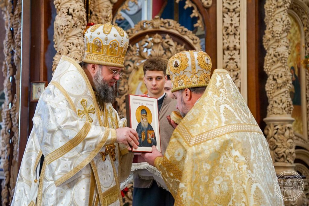 Наприкінці богослужіння архієпископ Сильвестр звернувся до присутніх з архіпастирськими настановами та передав благословення від Блаженнішого Митрополита Онуфрія, привітав настоятеля храму протоієрея Василія, який цього дня святкує свій День Ангела та вручив йому пам’ятний подарунок.
