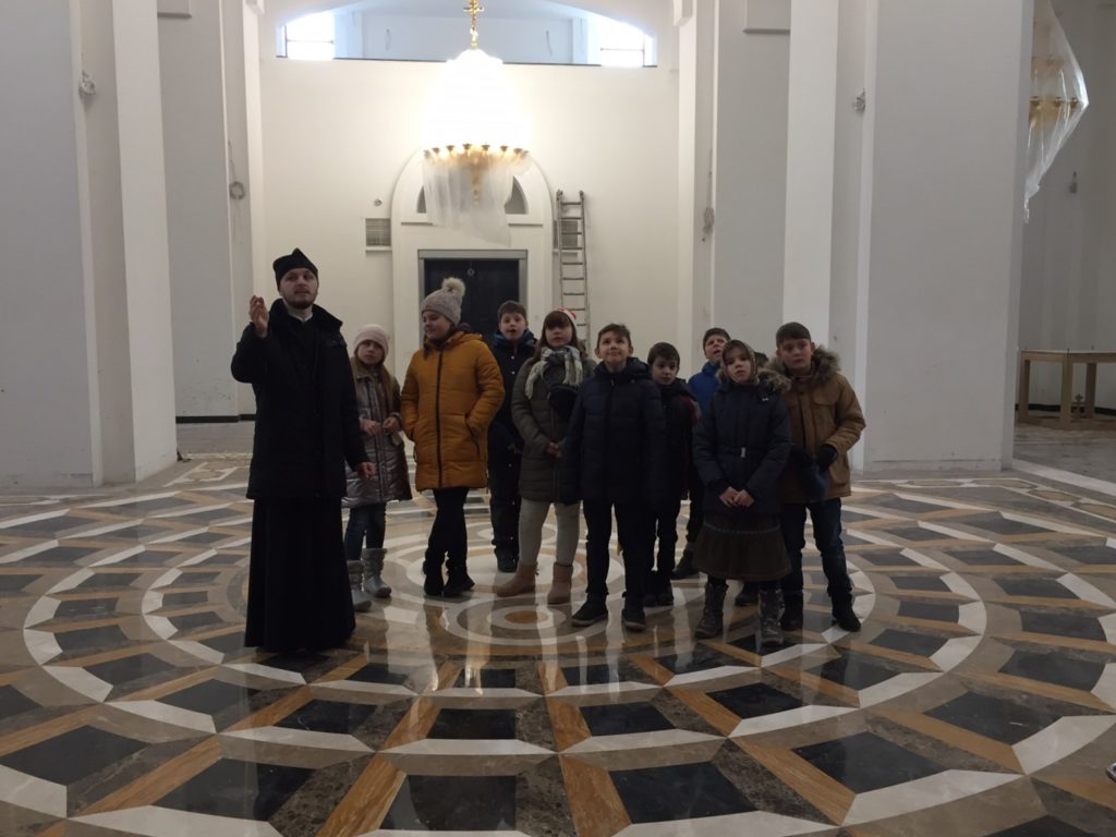 Учні недільної школи зазвичай засвоюють знання у нашій аудиторії, але сьогоднішні заняття поєднали лекційні знання з практикою богослужбового та храмового життя.