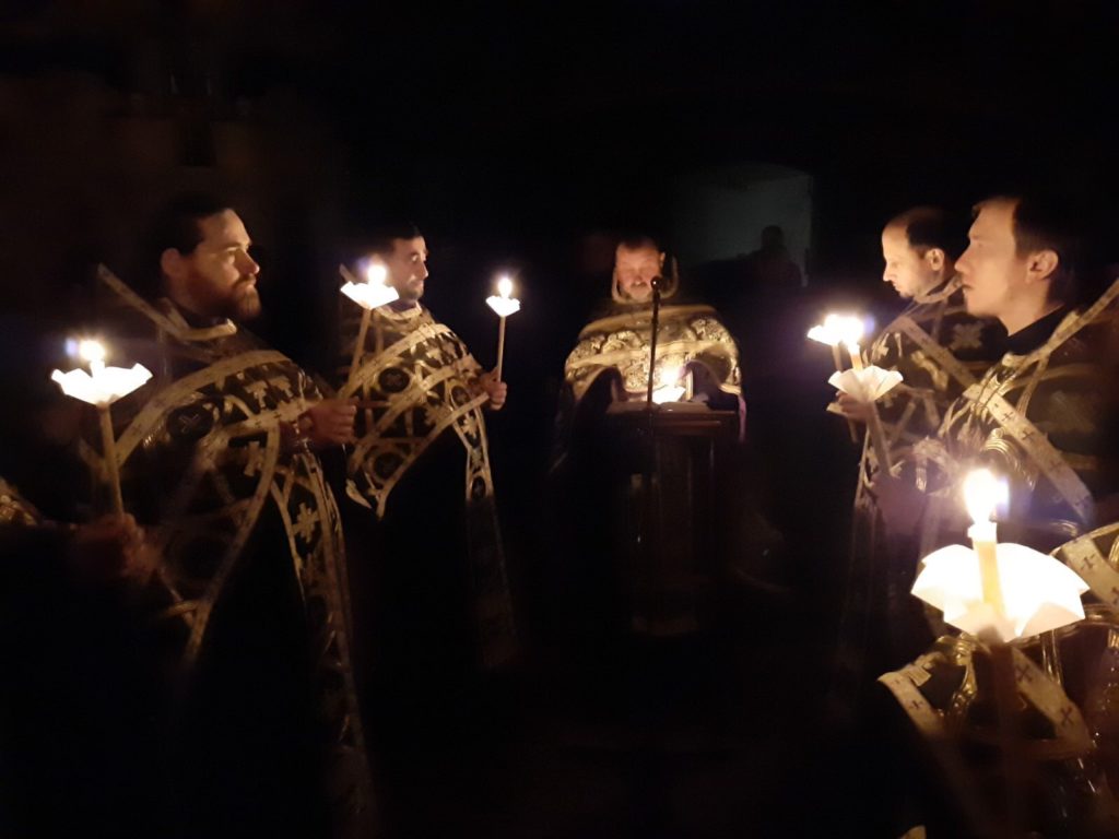 1 квітня 2020 року, в Трьохсвятительському храмі парафії на честь Різдва Христового звершено богослужіння утрені четверга 5-ї седмиці Cвятого Посту з читанням Великого канону прп. Андрія Критського.