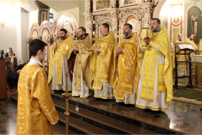 За Літургією отцю настоятелю співслужили клірики парафії та духовенство столиці.