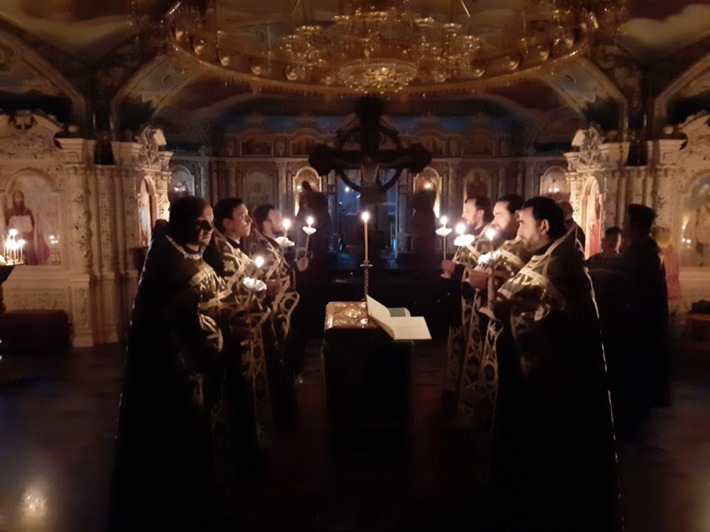 Увечері, 5 квітня 2020 року, у неділю пятої седмиці Великого посту у храмі на честь Трьох Святителів була звершена Пасія з читанням акафісту Страстям Христовим.