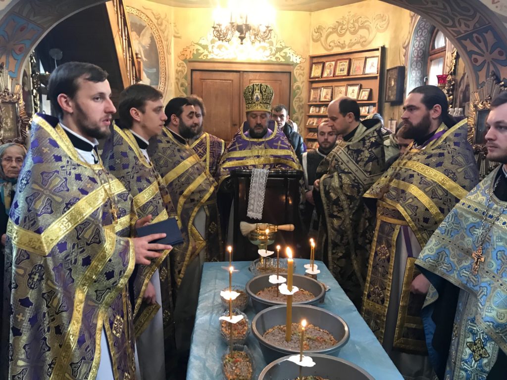 Після закінчення Літургії духовенство звершило молебень великомученику Феодору Тирону в кінці якого настоятель Парафії протоієрей Василій Біляк прочитав молитву над коливом і освятив його.