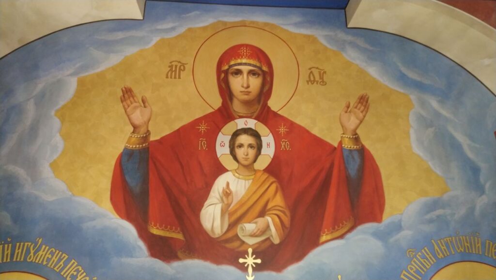 Саме тому святі отці і називали ікони богословʼям, що виражене у фарбах. Розпис храму наочно показує Церкву Небесну, Торжествуючу – Спасителя, Богородицю, Ангелів та Святих. І тим самим ікона нагадує про мету нашого життя – теж стати учасниками цього Царства Божого.