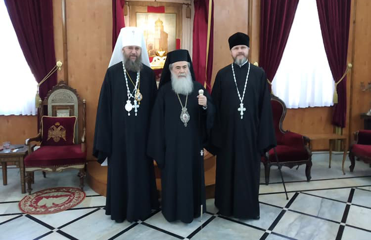 Патриарх Иерусалимский Феофил III принял в своей резиденции в Иерусалиме Управляющего делами Украинской Православной Церкви митрополита Бориспольского и Броварского Антония и заместителя председателя Отдела внешних церковных связей УПЦ протоиерея Николая Данилевича, сообщает Mitropolia.kiev.ua.