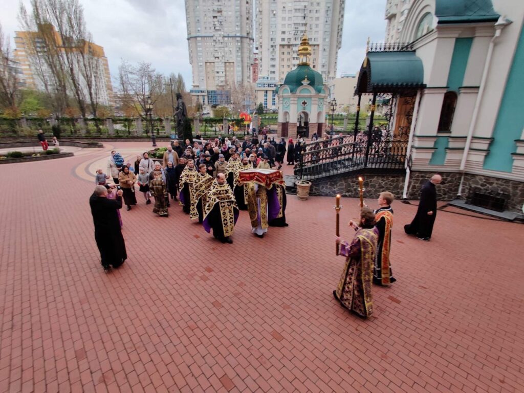 Після винесення Плащаниці перед нею духовенство прочитало канон “на плач Пресвятої Богородиці” авторства Симеона Логофета.