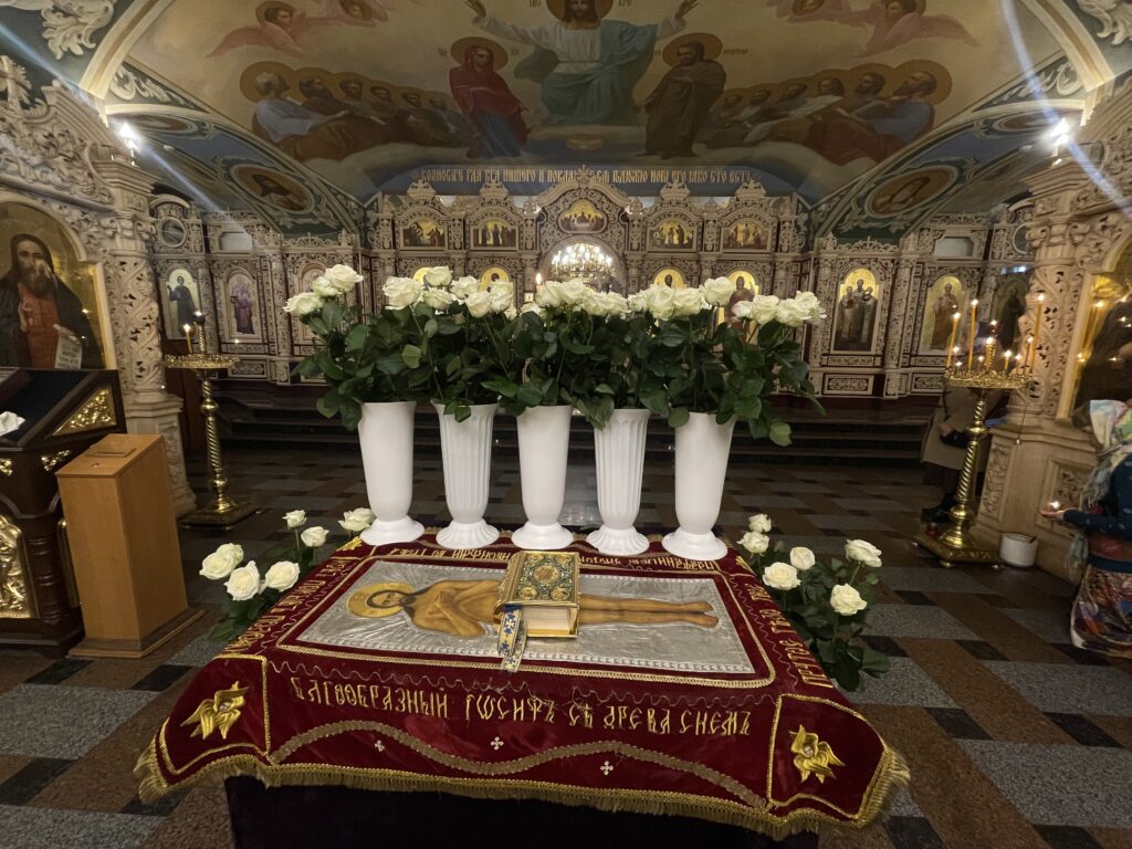 Наприкінці вечірні з вівтаря вбула винесена та покладена на середині храму Плащаниця.