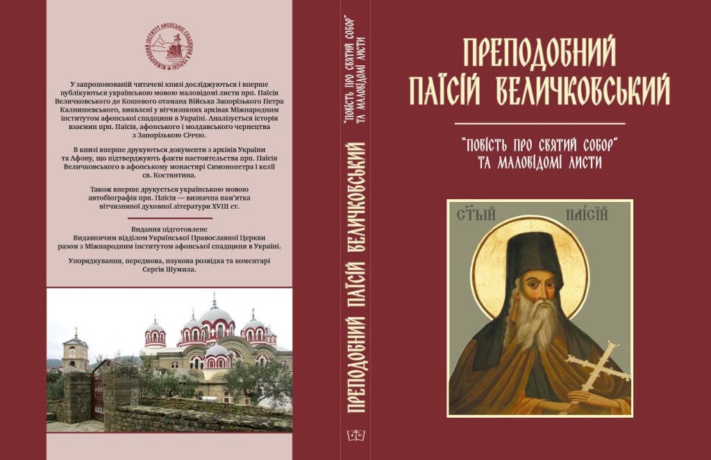 В книзі вперше друкуються документи з архівів України та Афону, що проливають світло на діяльність на Афоні, в Греції та Румунії відомого українського святого, культурного і релігійного діяча XVIII ст. прп. Паїсія Величковського. Також тут вперше друкується українською мовою автобіографічний твір прп. Паїсія «Повість про святий собор», повідомляє Інформаційно-просвітницький відділ УПЦ.