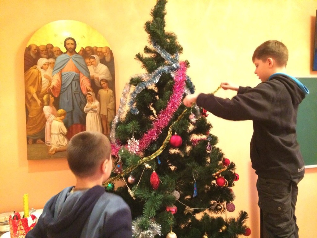 Далі юні прихожани прикрасили ялиночку та поспівали пісень про Святого Миколая.