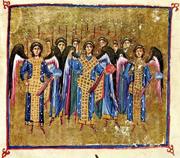 Итак, Ангелы – это посланники, служители и вестники Царя Небесного, и чтобы передать все величие их чина, позднеримские/византийские художники, как мы уже отметили, обращались к образам земного царства. Таким образом, пышный придворный церемониал византийского двора нашел свое отражение в христианской иконографии, и вот Ангелы уже предстают пред нами в ризах ромейских придворных сановников и военачальников. Конечно, времена меняются, и сейчас было бы неразумно изображать ангельский чин в костюмах госчиновников или в парадной форме представителей Министерства обороны (хотя это и являлось бы наиболее адекватным «переводом» византийской иконографии на современный язык). Но отношение к правителям и госслужащим в наше время разительно отличается от отношения к власть имущим в древности. Вот для античного и средневекового сознания «осовременивание» реалий Священной истории и духовного мира – вещь вполне обыденная (даже в эпоху Ренессанса в Западной Европе допускалось в религиозной живописи использовать современные для художника костюмы).