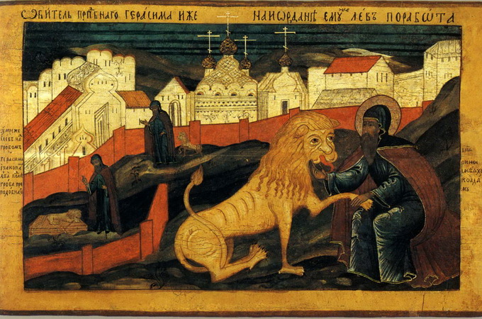 Преподобный Герасим был родом из Ликии (Малая Азия). С юности он отличался благочестием. Приняв монашество, преподобный удалился в глубь Фиваидской пустыни (Египет). До самой кончины преподобному Герасиму помогал в трудах лев.