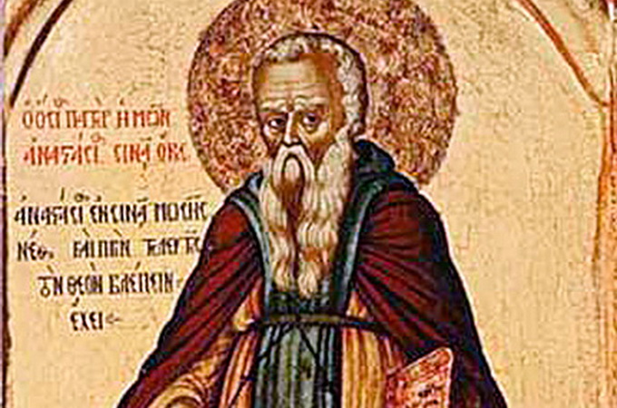 Преподобный Анастасий, игумен Синайской горы, родился в конце VI века. В юности он получил прекрасное светское образование, которое завершил изучением Богословия.