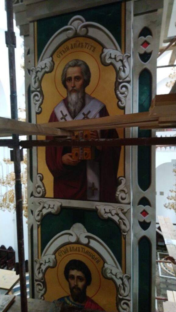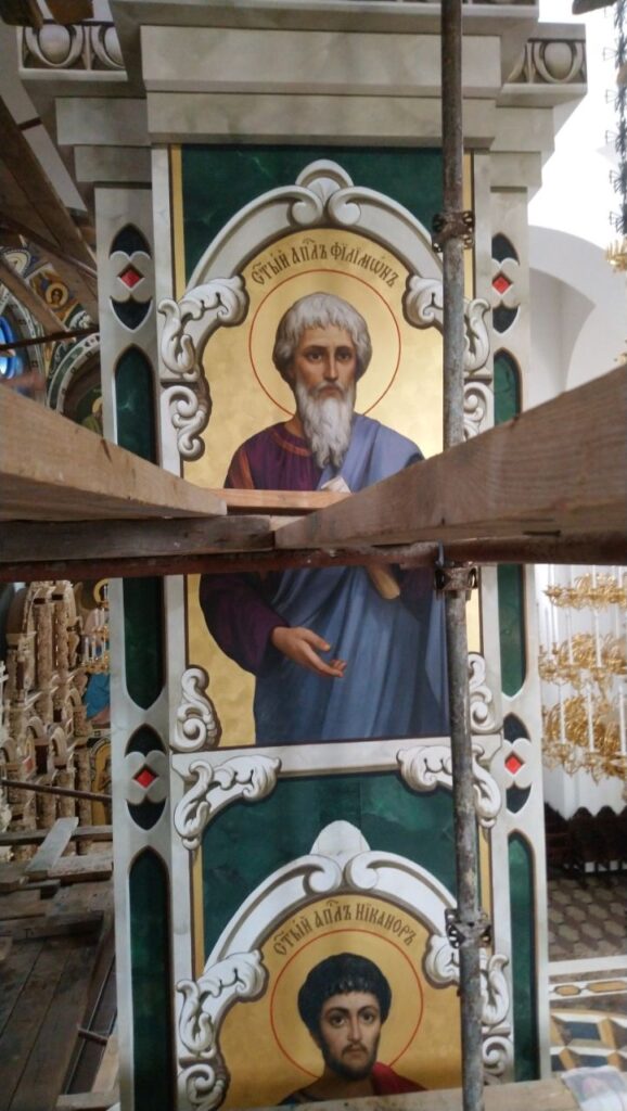 Зокрема, колони будуть прикрашати ікони найближчих 12-ти учнів Христових та деяких з 70-ти апостолів. Вже написані ікони апостолів Павла, Філімона, Філіпа, Тита, Тимофія, Ніканора.