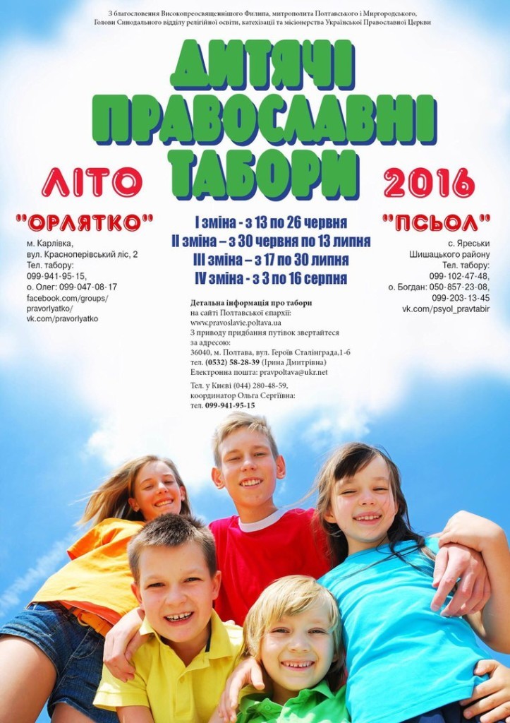 Влітку, починаючи з 13 червня, з благословення митрополита Полтавського і Миргородського Филипа в Полтавській єпархії УПЦ традиційно працюватимуть православні дитячі табори відпочинку «Орлятко» та «Псьол».