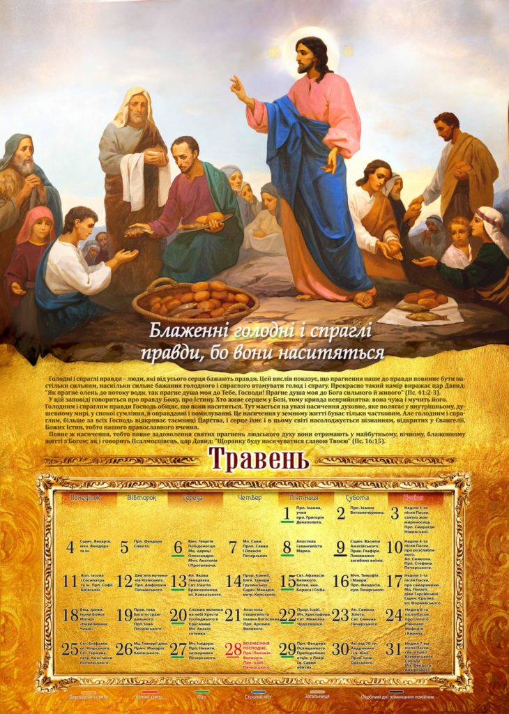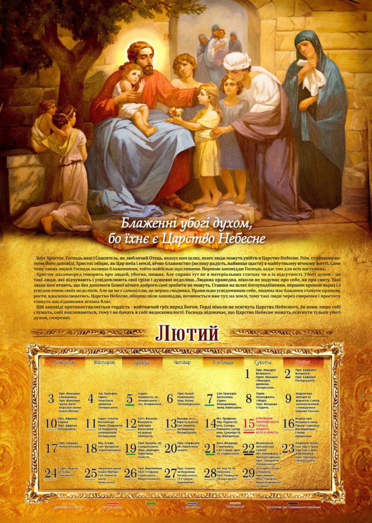 Наша парафія традиційно випускає церковний календар на прийдешній рік. Цього року кожен місяць буде розповідати читачам про заповіді Блаженства, які були дані Спасителем в Нагірній проповіді.